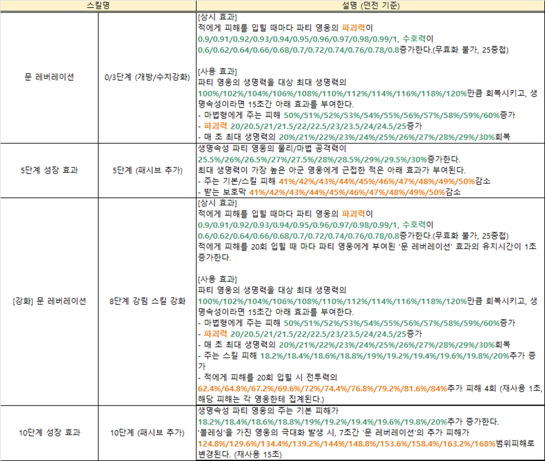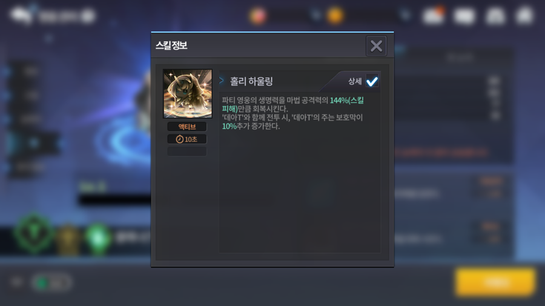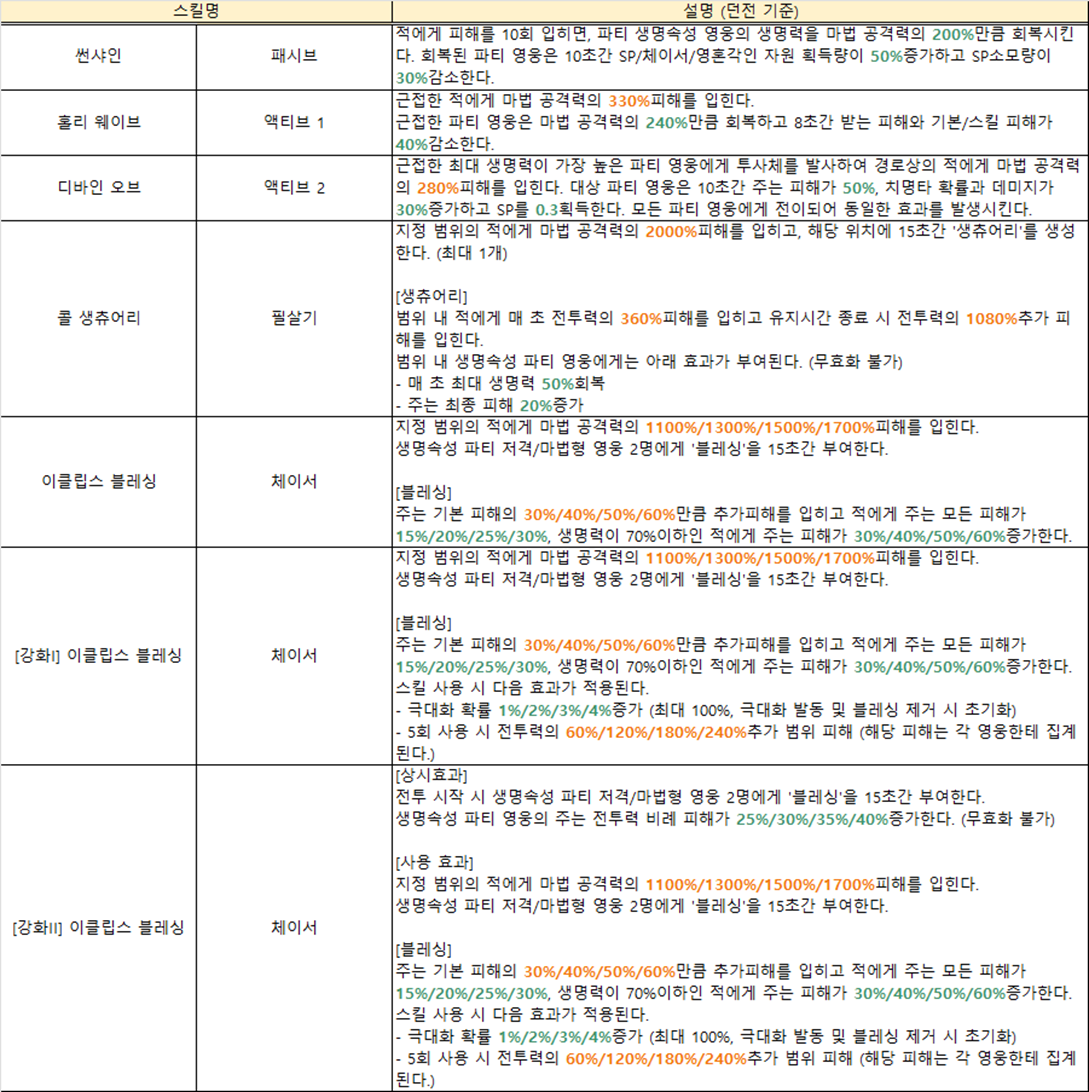 ■ 데아(T) 기본 스킬 / 필살기 / 체이서 스킬 주요 효과