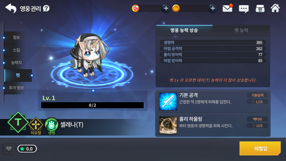 - 셀레나(T)는 데아(T) 획득 시 1 Lv 상태로 획득할 수 있습니다.
