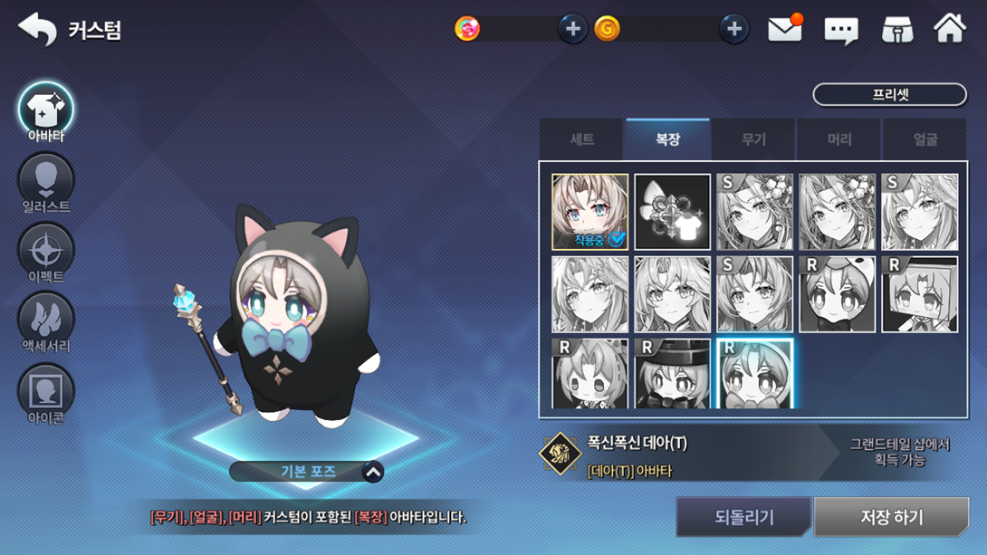 - 해당 아바타는 [상점 > 커스텀 > 그랜드테일 샵]에서 획득할 수 있습니다.