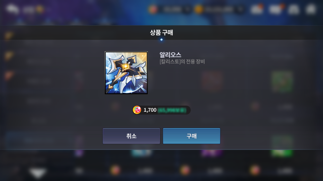 - [상점] → [커스텀 상점] → [선레이 위크 칼리스토]에서 결제를 통해 구매가 가능합니다.