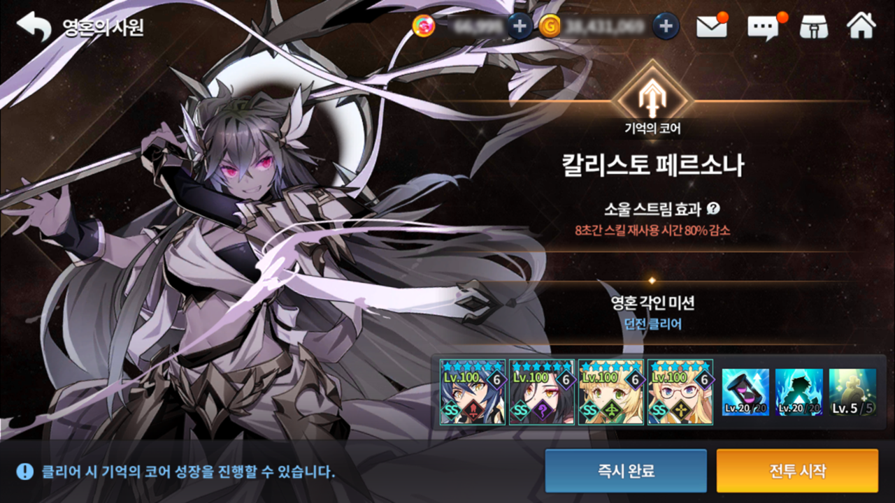 - 영혼의 사원은 영웅들의 영혼 각인 성장 미션 수행을 위한 던전이므로 미션 완료 후에는 재진입할 수 없습니다.