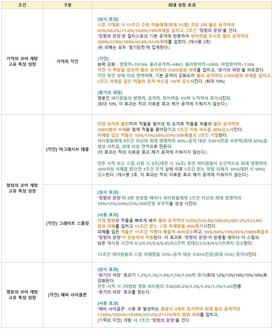 - 칼리스토는 한계 돌파, 체이서 및 영혼 각인 스킬이 영웅 출시 시점에 함께 포함됩니다.