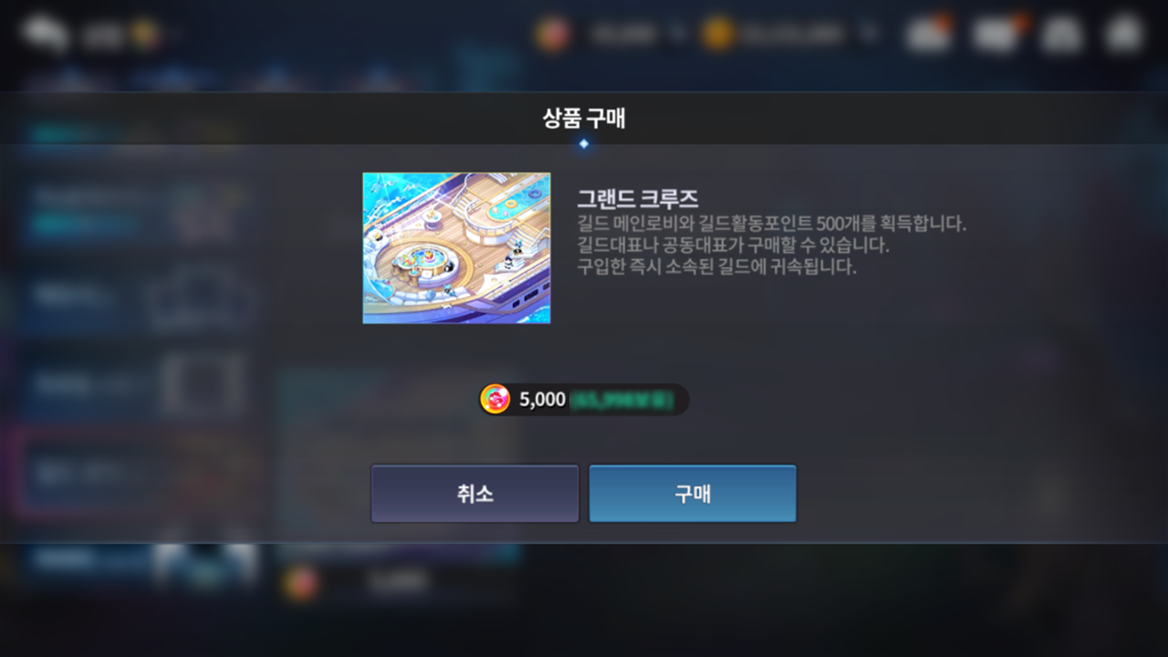 - [상점] → [커스텀 상점] → [길드 로비 샵]에서 결제를 통해 구매가 가능합니다.