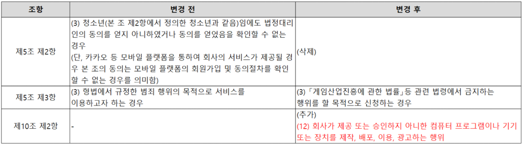 [카카오게임즈 모바일서비스 운영정책 개정]