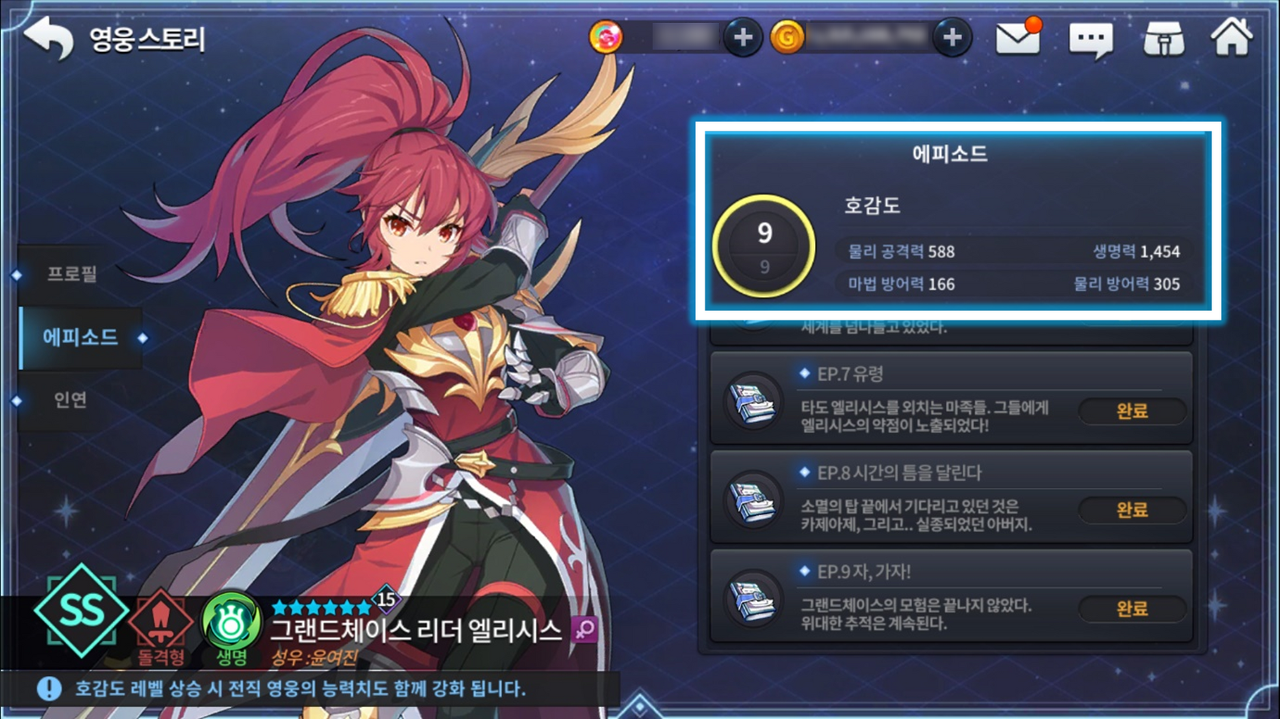 ■ 기본 영웅의 호감도 레벨 상승 시, 전직 영웅의 능력치도 함께 증가합니다.