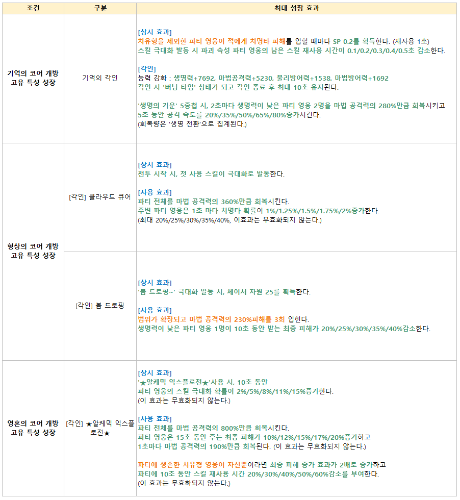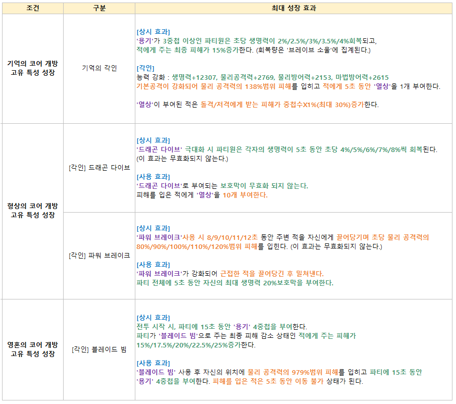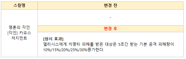 ■ 엘리시스(T) 영혼 각인 주요 효과