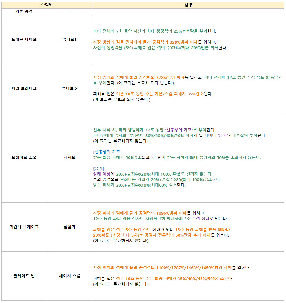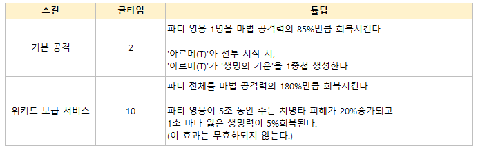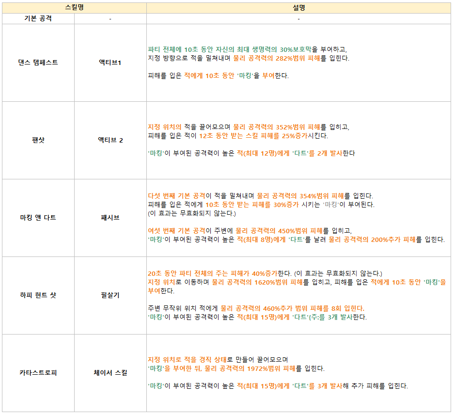 ■ 아르메(T) 기본 스킬 / 필살기 / 체이서 스킬 주요 효과