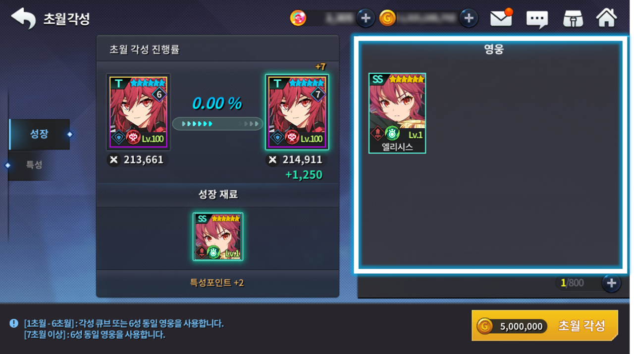 ■ 전직 영웅은 기본 영웅 6성을 성장 재료로 사용 가능합니다.