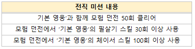■ ‘기본 영웅 20체이서 성장’ 조건을 만족하면 전직 미션을 시작할 수 있습니다.