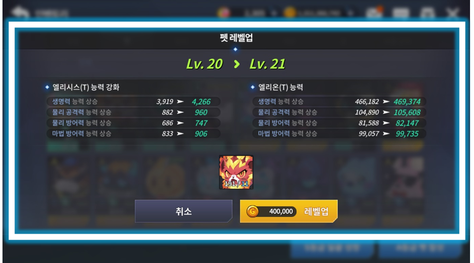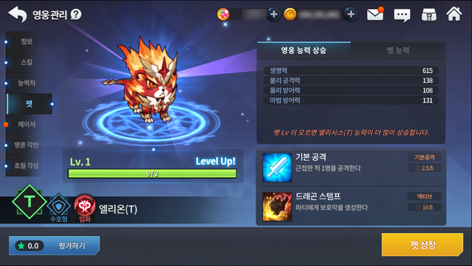 - ‘전직 영웅 펫’은 ‘기본 영웅 펫’을 동일하게 재료로 사용하여 성장할 수 있습니다.