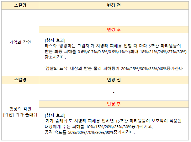 ■ 영웅 밸런스 : 라스 - 기억의 각인 내용이 일부 수정되었습니다.