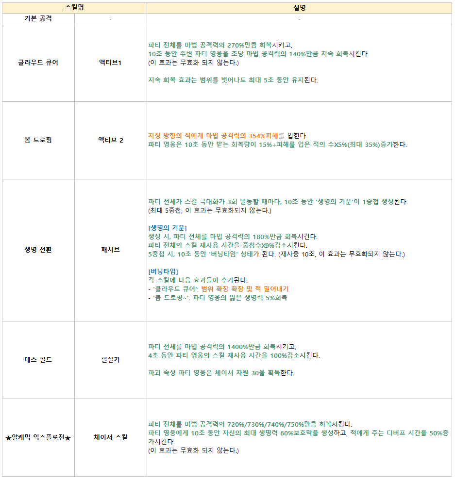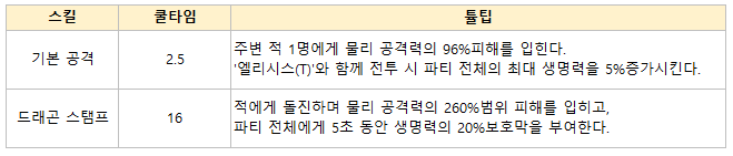 ■ 리르(T) 기본 스킬 / 필살기 / 체이서 스킬 주요 효과