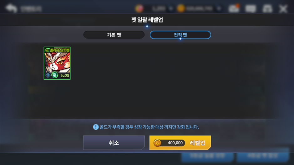 - 일괄 성장 시, 기본 펫 / 전직 펫 탭을 선택하여 진행하도록 개선됩니다.