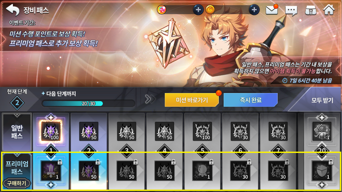 4) 프리미엄 패스를 구매하시어 추가 보상을 획득할 수 있어요~