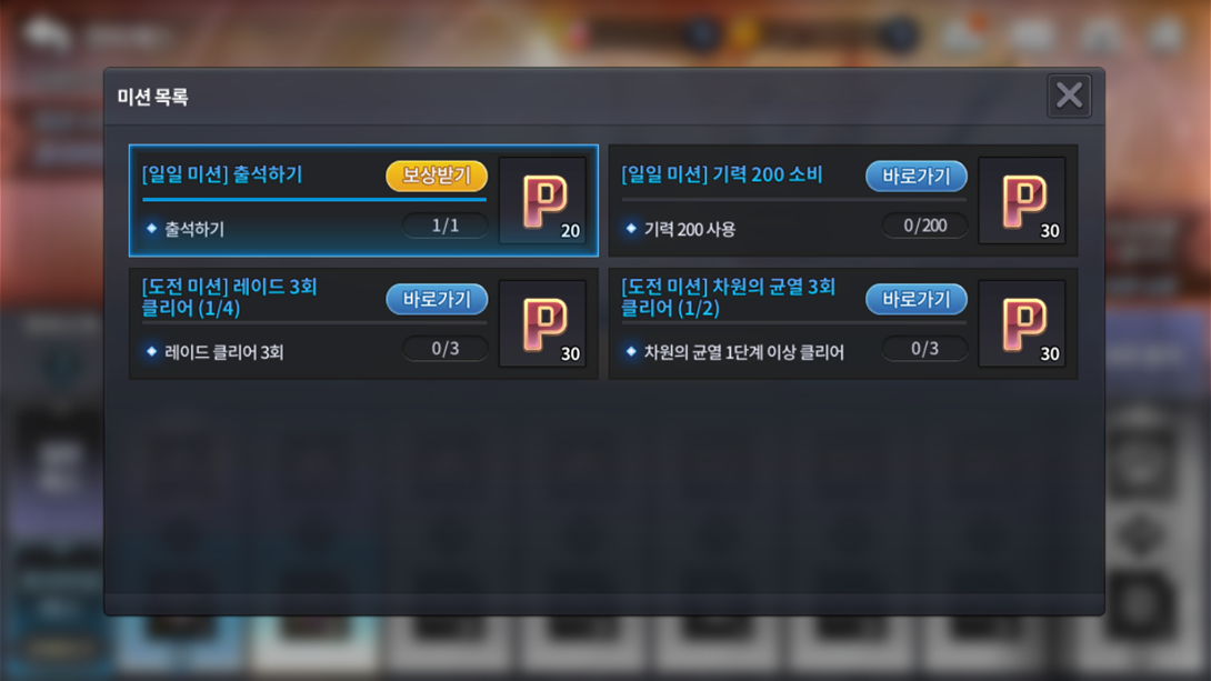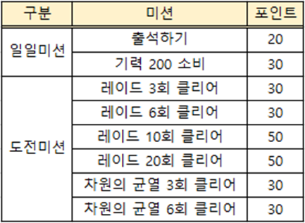 ※ 일일 미션은 00:00 기준으로, 00:00이후 진행 중이던 미션은 초기화됩니다.