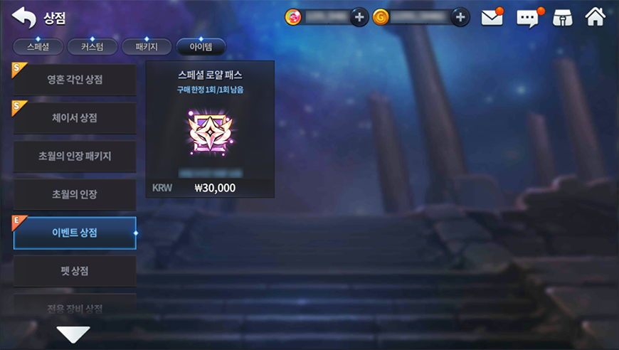 5) 스페셜 로얄 패스는 [아이템 > 이벤트 상점 > 스페셜 로얄 패스]를 통해서도 구매할 수 있답니다!