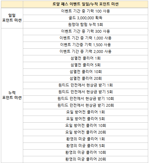 [로얄 패스 이벤트 일일/누적 포인트 미션]