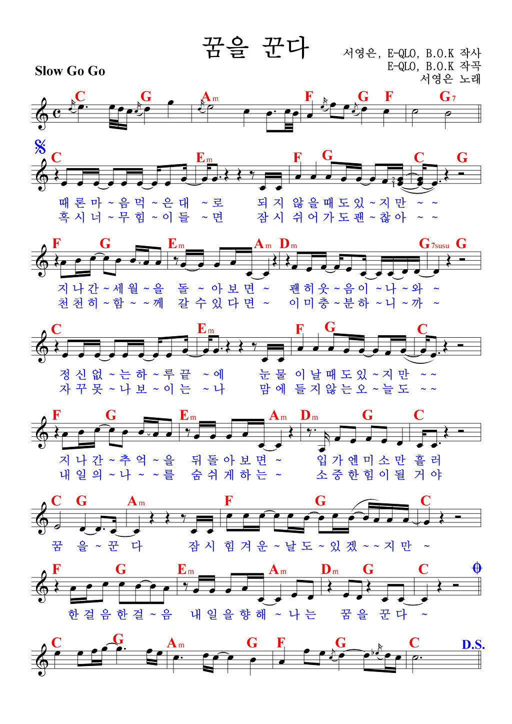 | 꿈을 꾼다 - 서영은 (2017년 드라마 김과장 OST) 때론 마음먹은 대로 되지 않을 때도 있지만 지나간 세월을 돌아보면 괜히 웃음이 나와 정신없는 하루 끝에 눈물이 날 때도 있지만 지나간 추억을 뒤돌아보면 입가엔 미소만 흘러 꿈을 꾼다 잠시 힘겨운 날도 있겠지만 한 걸음 한 걸음 내일을 향해 나는 꿈을 꾼다 * 혹시 너무 힘이 들면 잠시 쉬어가도 괜찮아 천천히 함께 갈 수 있다면 이미 충분하니까 자꾸 못나 보이는 나 맘에 들지 않는 오늘도 내일의 나를 숨 쉬게 하는 소중한 힘이 될 거야 꿈을 꾼다 잠시 힘겨운 날도 있겠지만 한 걸음 한 걸음 내일을 향해 나는 꿈을 꾼다 꿈을 꾼다 잠시 외로운 날도 있겠지만 세월이 흘러서 시간이 가면 모두 지나간다 꿈을 꾼다 잠시 힘겨운 날도 있겠지만 한 걸음 한 걸음 내일을 향해 나는 꿈을 꾼다 행복한 꿈을 꾼다 |
