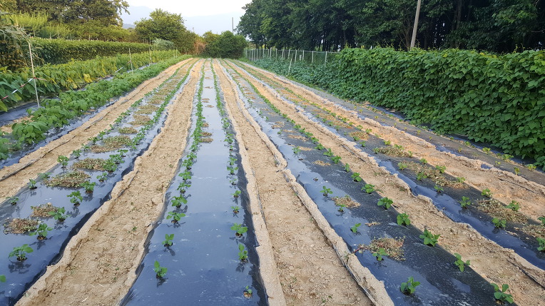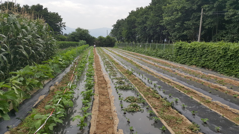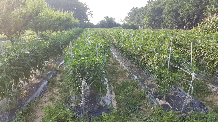 고추밭에 두단째 오이맘을 씌워 놓았다.