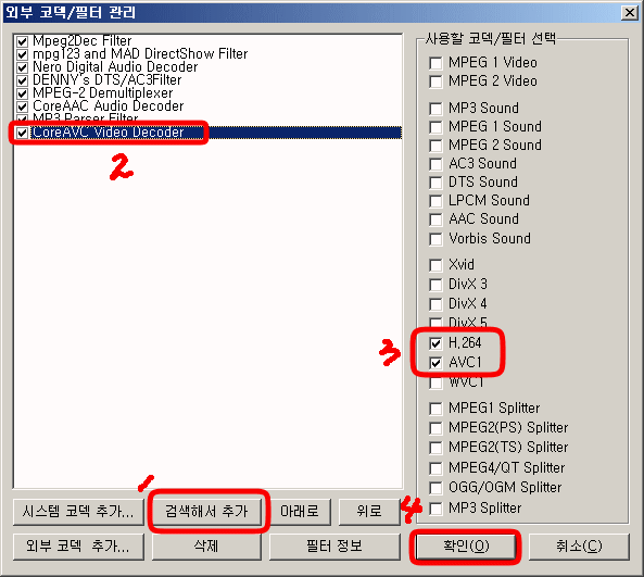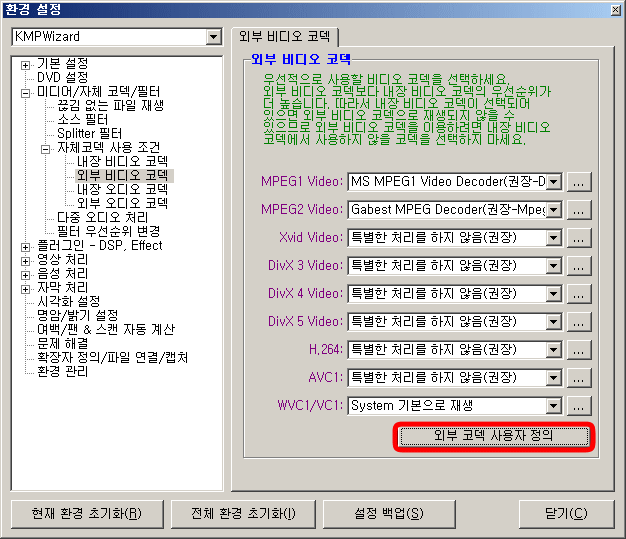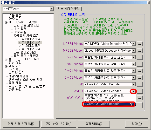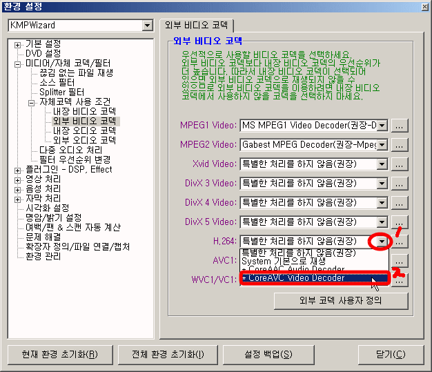 KM 플레이어에서 CoreAVC 외부코덱 설정