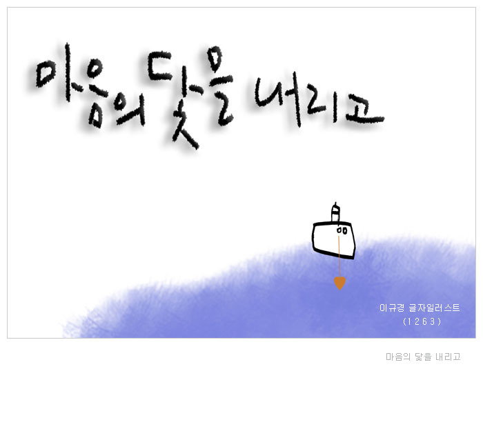 마음의 닻을 내리고-캘리그라피,글자일러스트 작성자김유경|작성시간16.12.11|조회수52 목록 댓글 0 글자크기 작게가 글자크기 크게가 다음검색 현재 게시글 추가 기능 열기 북마크 공유하기 신고 센터로 신고 댓글 댓글 0 댓글쓰기 댓글 리스트