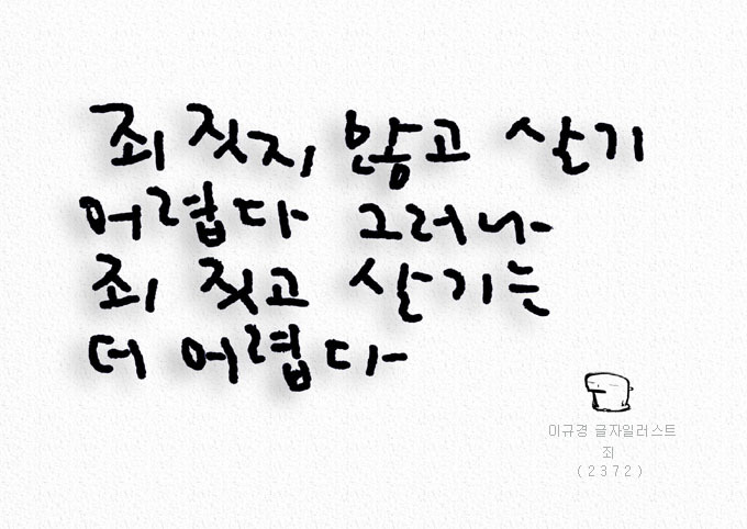 죄-그림글자,캘리그라피,글자일러스트 작성자김유경|작성시간19.12.31|조회수389 목록 댓글 0 글자크기 작게가 글자크기 크게가 죄-그림글자,캘리그라피,글자일러스트 다음검색 현재 게시글 추가 기능 열기 북마크 공유하기 신고 센터로 신고 댓글 댓글 0 댓글쓰기 댓글 리스트