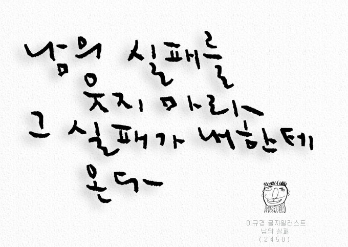 남의 실패-그림글자,캘리그라피,글자일러스트 작성자김유경|작성시간20.03.18|조회수151 목록 댓글 0 글자크기 작게가 글자크기 크게가 남의 실패-그림글자,캘리그라피,글자일러스트 다음검색 현재 게시글 추가 기능 열기 북마크 공유하기 신고 센터로 신고 댓글 댓글 0 댓글쓰기 댓글 리스트