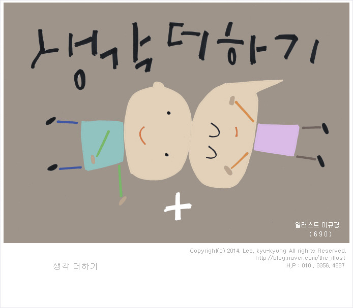 생각 더하기- 글자일러스트,이규경일러스트,일러스트,타이포그래피,캘리그래피 작성자김유경|작성시간14.06.25|조회수79 목록 댓글 0 글자크기 작게가 글자크기 크게가 생각 더하기 글자일러스트 이규경 다음검색 현재 게시글 추가 기능 열기 북마크 공유하기 신고 센터로 신고 댓글 댓글 0 댓글쓰기 댓글 리스트