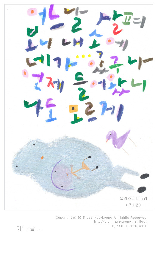 어느날,,,-캘리그라피,글자일러스트,그림글자,캘리그라피,손글씨 작성자김유경|작성시간15.04.19|조회수54 목록 댓글 0 글자크기 작게가 글자크기 크게가 다음검색 현재 게시글 추가 기능 열기 북마크 공유하기 신고 센터로 신고 댓글 댓글 0 댓글쓰기 댓글 리스트