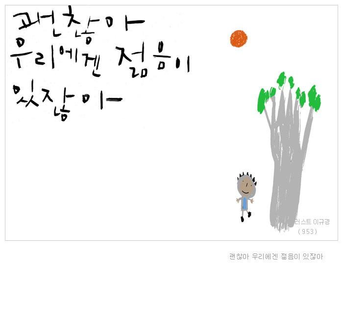 괜찮아-캘리그라피,글자일러스트 작성자김유경|작성시간16.02.06|조회수94 목록 댓글 0 글자크기 작게가 글자크기 크게가 다음검색 현재 게시글 추가 기능 열기 북마크 공유하기 신고 센터로 신고 댓글 댓글 0 댓글쓰기 댓글 리스트