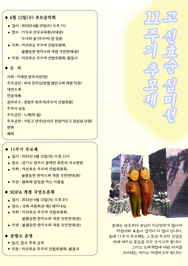 2002년 이웃 파주에서 미군 군사훈련 중 발생한 사건이었으니 고양시에서도 가만히 두고 볼 수 없었지요.