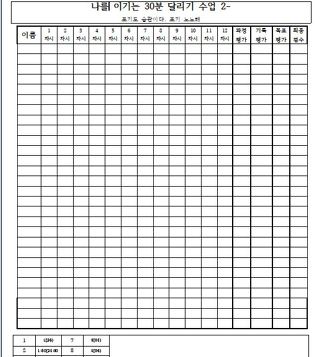 평가 기록지 입니다 : ) 차시별 운동 프로그램 시간과 모든 평가내용을 기록합니다.