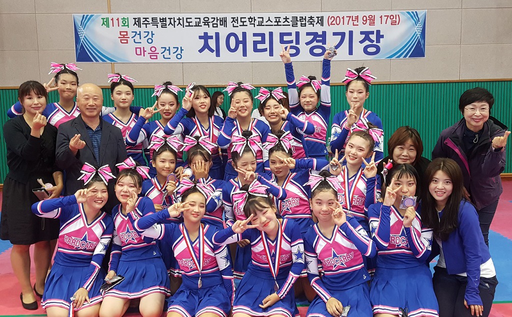 올해는 제주특별자치도교육청 정책사안인 '모다들엉 운동할락'에 저희 학교는 치어리딩을 선정하여 사업을 진행할 예정입니다.