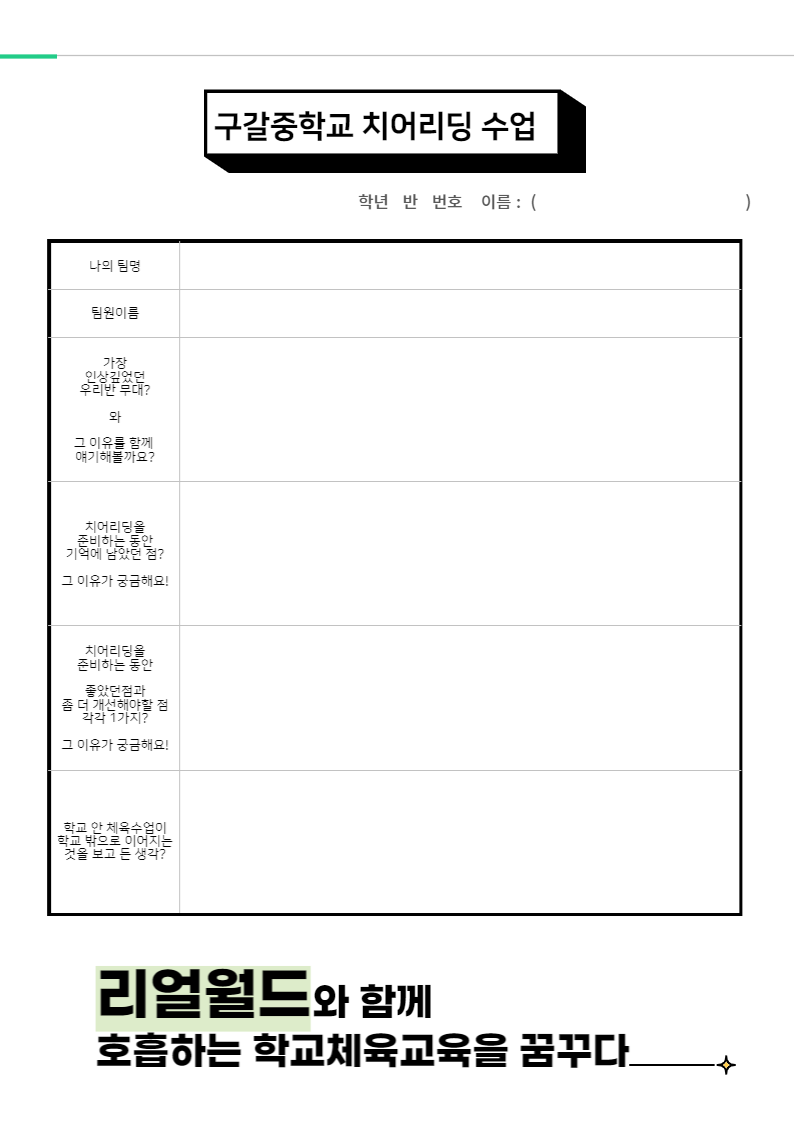 치어리딩 성찰 활동지를 활용하여 1차시로 구성했다.