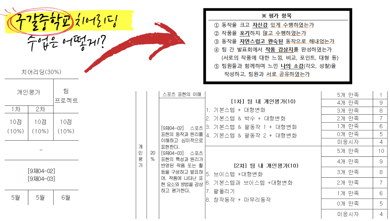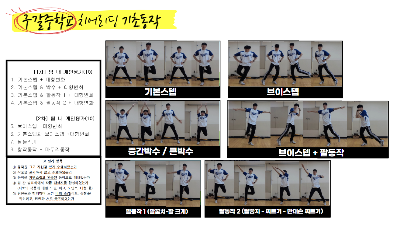 기본 동작을 다진 후 수행평가를 거치고, 삶으로 나아가는 치어리딩 수업을 의도했다