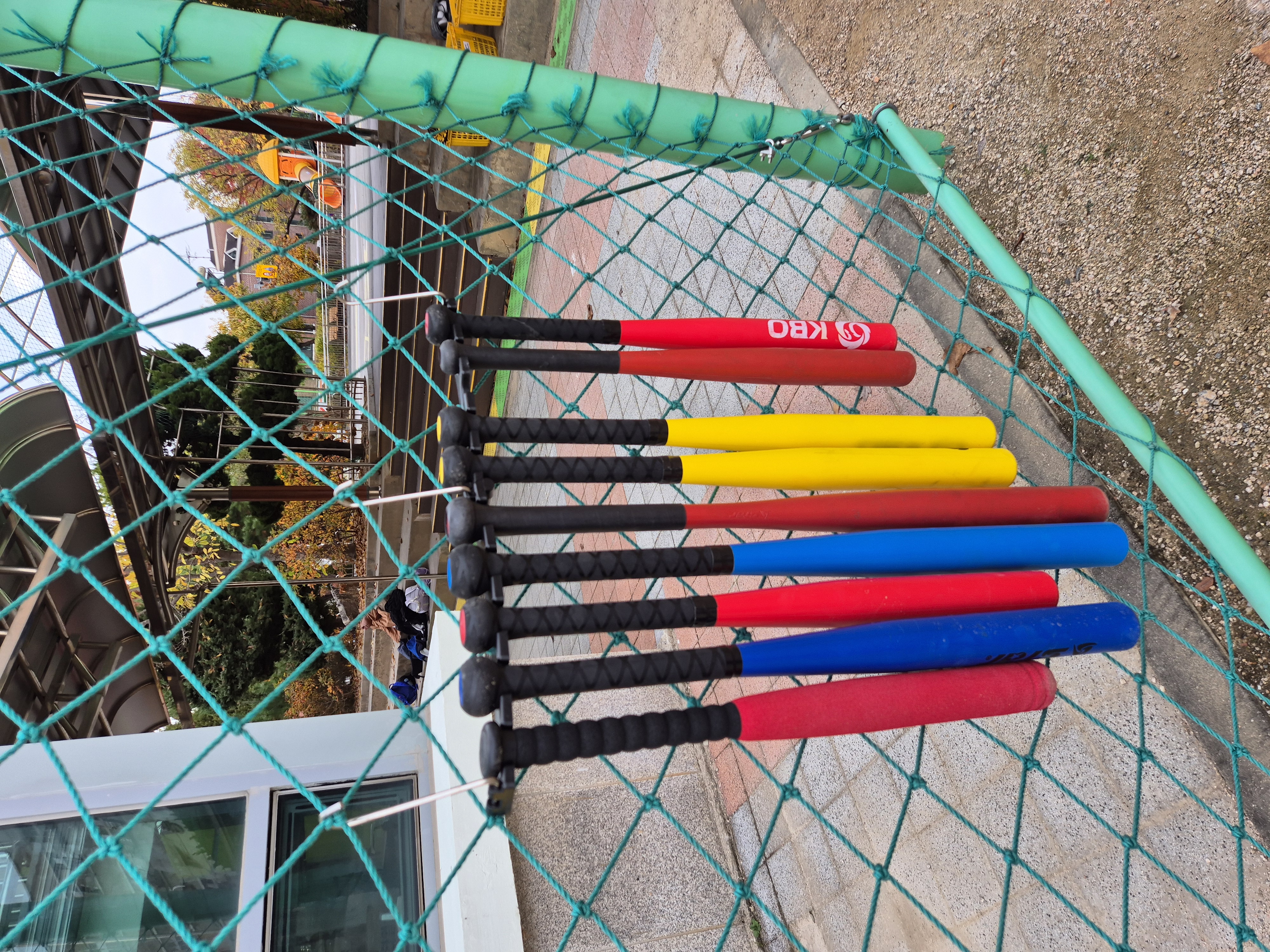 1. 티볼 수업 때 배트를 바구니 안에 넣는 것보다 저렇게 정리해 놓으니 자기 길이에 맞게 가져가고, 정리도 잘 해 놓더라고요.