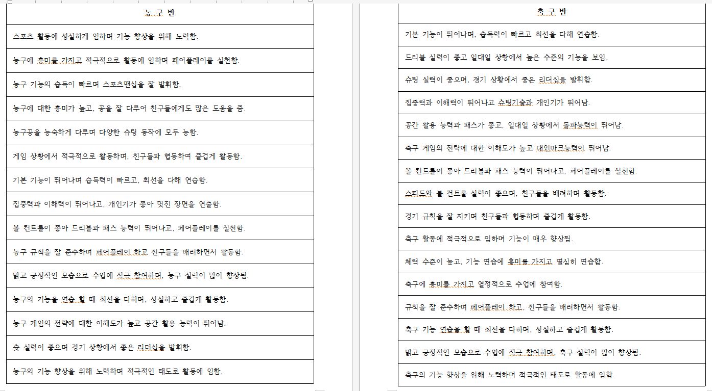 제목 예시: 농구수업 평가안 공유 or 배드민턴 규칙 이해자료 등