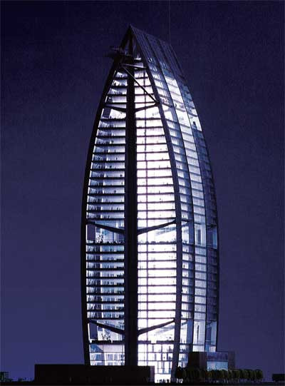 1995년 대우전자는 세계 5대 가전메이커 진입을 목표로 최첨단 R&D(연구개발) 및 본사 사옥으로 쓰기 위한 탱크주의를 상징적으로 표현하는 신사옥 부지 3000여 평을 목동에 확보한다. 그러나 1999년 대우그룹 붕괴에 따른 워크아웃으로 2000년 공사가 중단됐다. 결국 2001년 철골구조까지 마친 신사옥을 매각하게 되면서 안타깝게도 이 프로젝트는 중단됐다. 포스터는 1995년 서울시와 한국의 상징물로서 대우의 이미지를 매력적으로 표현할 수 있는 기회로 삼아 높이 172m의 지하 6층, 지상 36층의 연면적 약 15만5000㎡의 사무실·연구소·문화공간을 포함한 대우전자 사옥을 계획한다. 끝이 뾰족한 형태의 이 고층 건물은 철골조와 콘크리트조의 혼합한 구조로서 주 철골 프레임은 두 개의 내부 기둥과 두 개의 외부 기둥으로 구성되어 건물의 곡선형 파사드로 이어진다. 초고층 건축물에 대한 시각적 부담감을 상쇄시킨다. 그리고 저층부 활성화를 위한 공공공간 확보 목적으로 활과 같은 유연한 곡선을 차용했다. 삼중으로 이루어진 건물의 스킨은 에너지 효율을 극대화시킨다. 조절 가능한 블라인드는 태양열 흡수를 차단하고 부분적인 자연 환기를 위해 개폐창문을 도입했다. 포스터의 환경 친화적인 성향과 구조적 대담성, 열정적 엔지니어의 상상력을 반영한 대우 사옥은 비록 계획안으로 남았지만 여전히 건축가들에게 수많은 시사점을 던지고 있다.