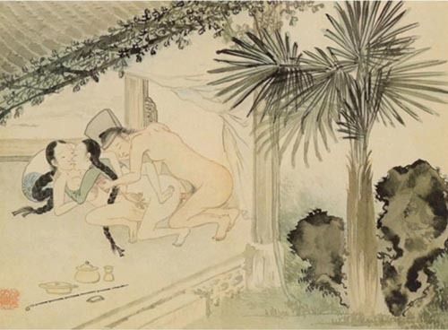 이러한 표현은 중국이나 일본의 춘화에서 보이는, 여인들이 눈을 뒤집고 입을 크게 벌려 괴성