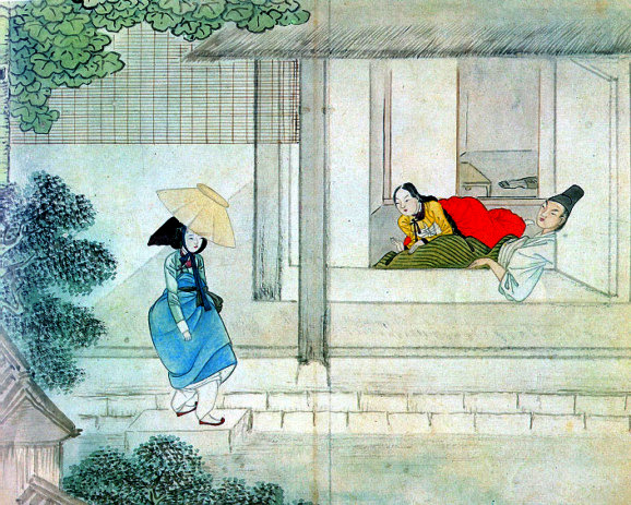 아마도 방안에 여인은 기생에 몸종이고, 그녀의 몸종과 사랑을 나누든게 아닐까 생각해봅니다.