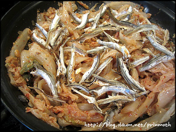 볶은 묵은지에 멸치를 투하한 다음~~