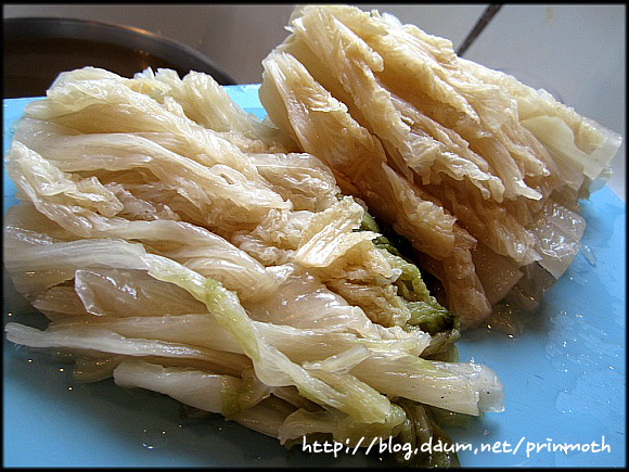 살짝 씻었더니 아삭한게 아직은 묵은지 본연의 맛에 충실하더군요~~^^*
