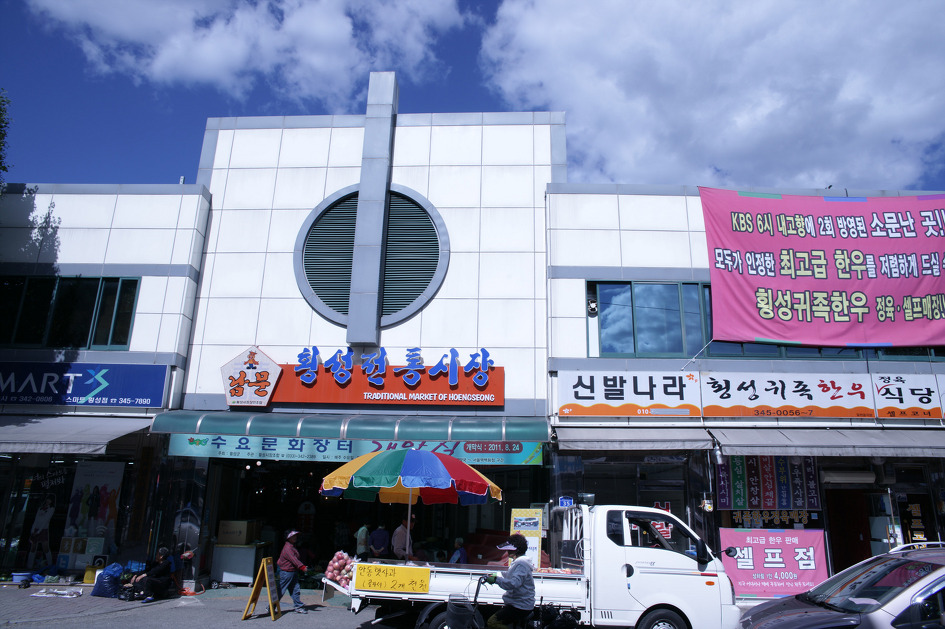 횡성 5일장이 열리는 횡성군내에 있는 횡성전통시장의 남문 모습입니다.