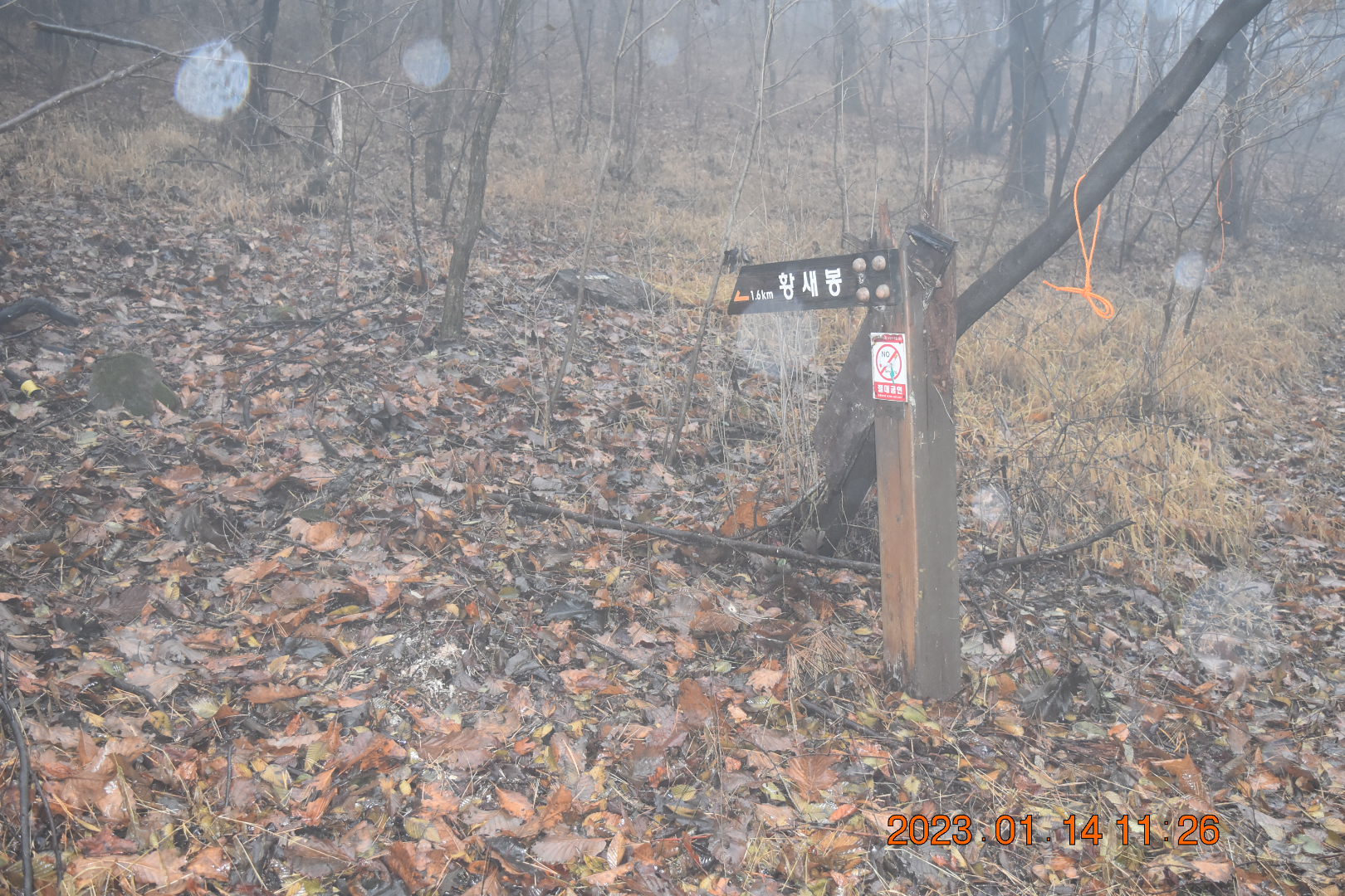 황새봉 1.6km 이정표