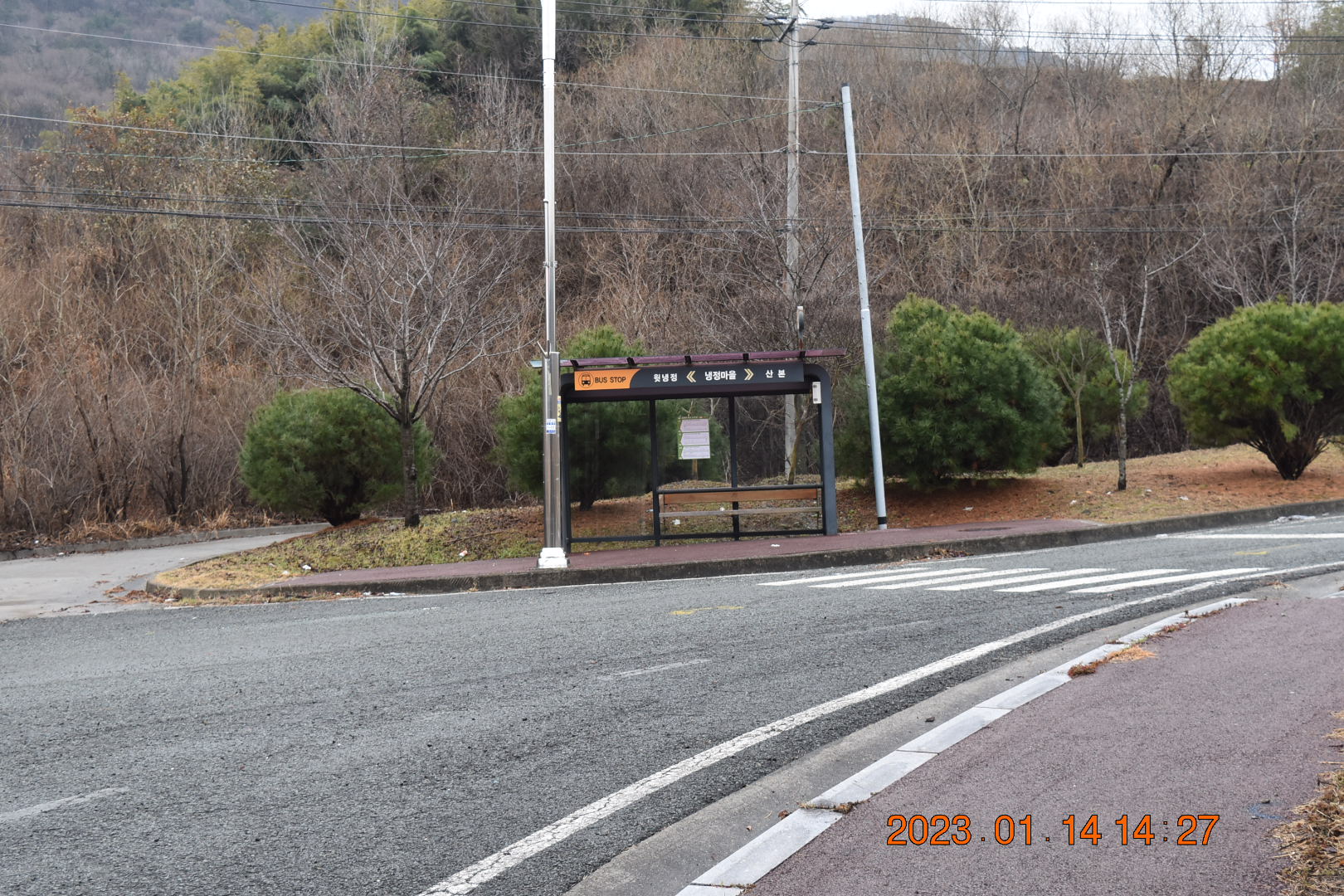 1042번 국도 굴다리를 지나가면 냉정마을 버스정류소