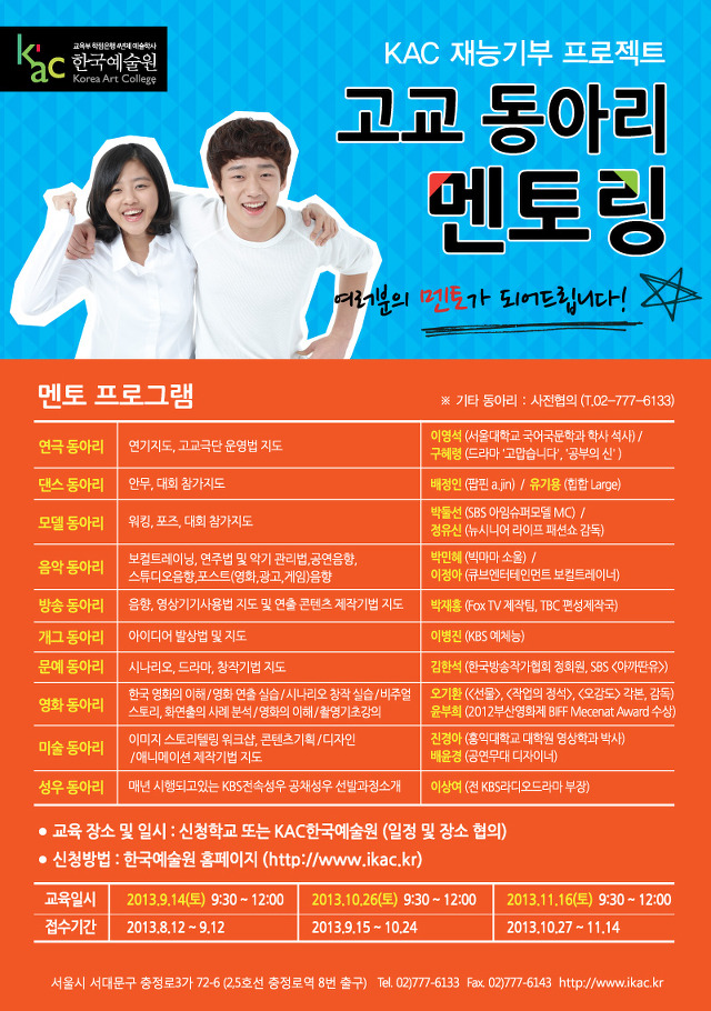 한국예술원 재능기부 프로젝트 <고교 동아리 멘토링>