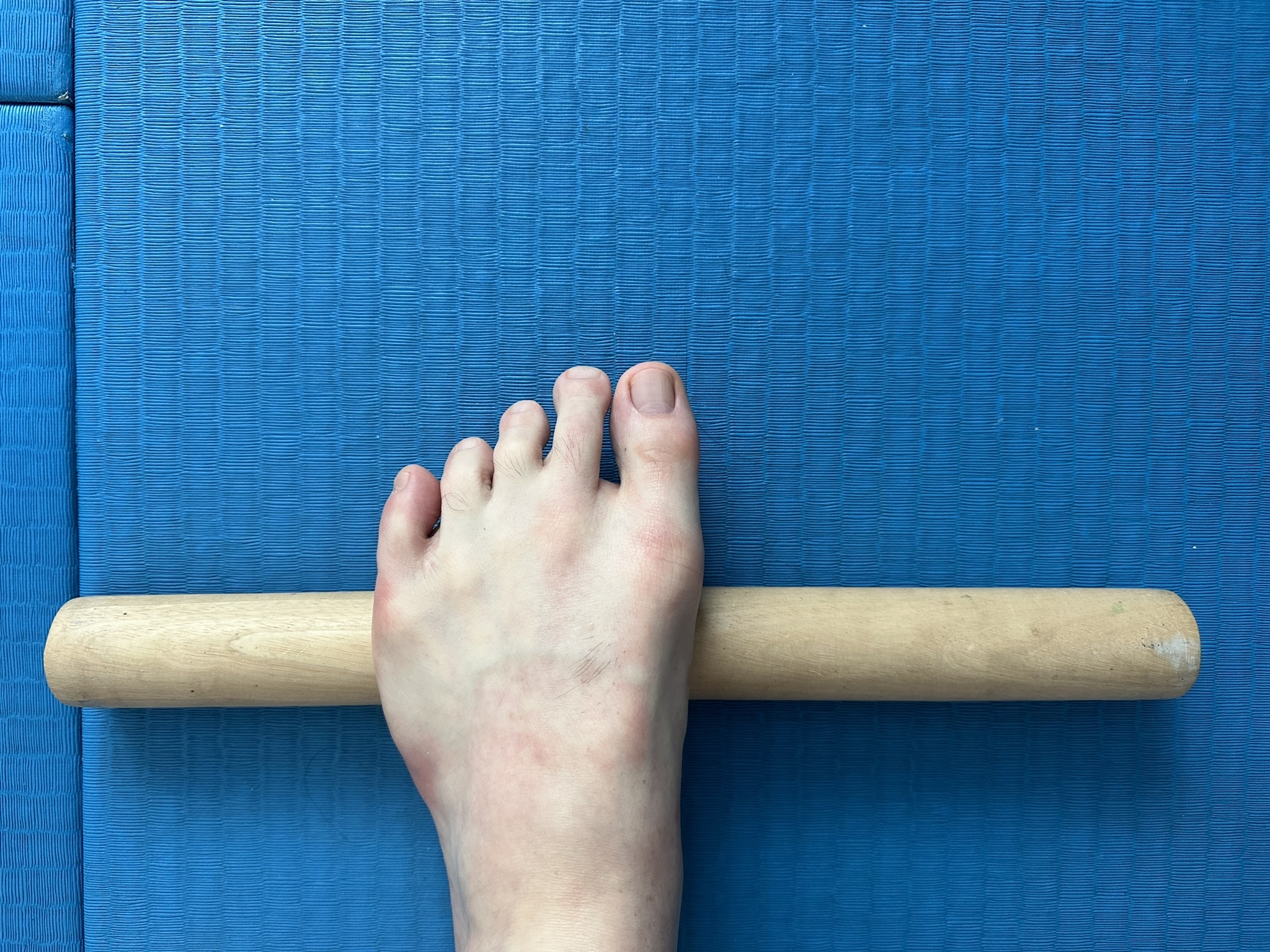 서서 발바닥 아래 놓고 굴리는 나무 밀대요. 밀가루 반죽할 때 쓰는 걸 발바닥 마사지에 쓰는 거죠.