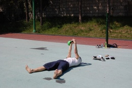 0. 양발 어깨 너비 눕는다. (사진은 발 간격이 좀 넓다)