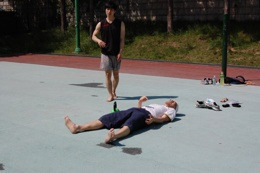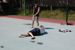 7. (태양광 때문에 시선 내림 : 잘못ㅠ) 왼손바닥으로 지탱.