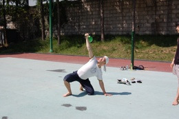 하이 힙 브릿지 동작이 추가되면서 땅바닥과 연결된 왼손바닥, 오른발바닥으로의 중심이동이 명확해졌다.